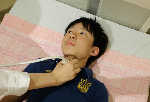 現代 甲状腺エコー検査をうける福島の少年のシーン(映画サダコの鶴より)