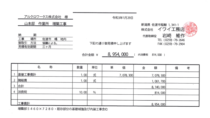 そして現在も、非常に古い建物を増改築して縫製工場を作っているので、解体途中から色々と目に見えていなかった部分が発見され、最初の見積もりからかなりズレてきてしまっています。当初の計画よりも税抜きで400万円近くも予算を上回ってしまいました。工務店様もびっくりです。何より、想像以上にお金がどんどんかかっていく現実に、僕が一番びっくりしています。