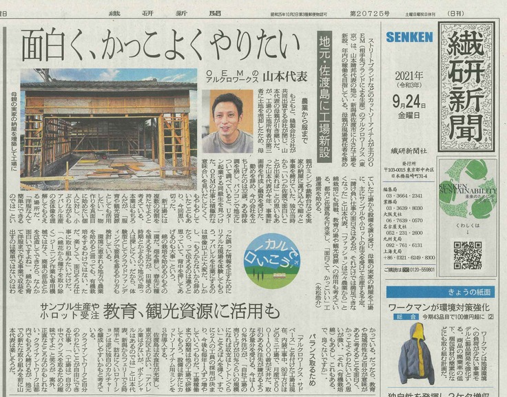 ※繊研新聞様 2021年9月24日付 掲載許可取得済み