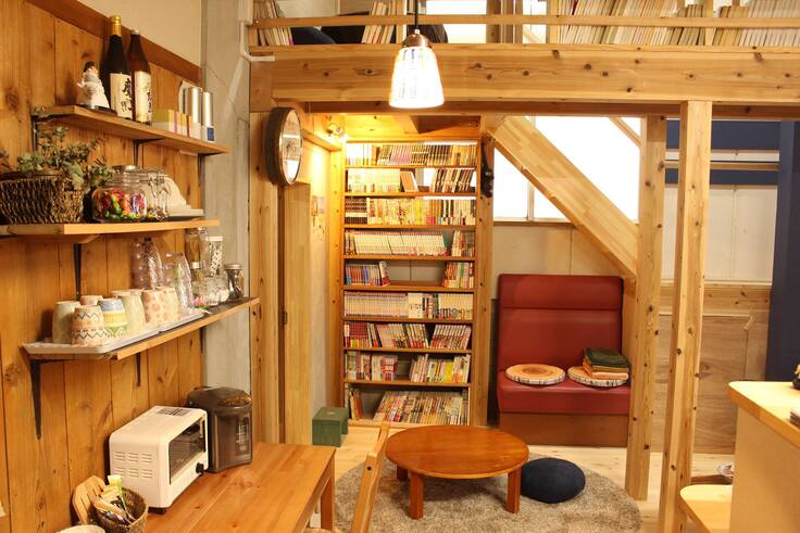 唐津市の中心街にほど近い大名小路の路地裏にひっそりある、主に歴史・時代ものの少女まんがを収集、保存し、ひろく親しまれることを目的とした私設の図書館兼ゲストハウス兼喫茶店です。金土日祝の開館日は女性限定のドミトリーとして、男性の方のご宿泊は貸切にてご利用いただけます。