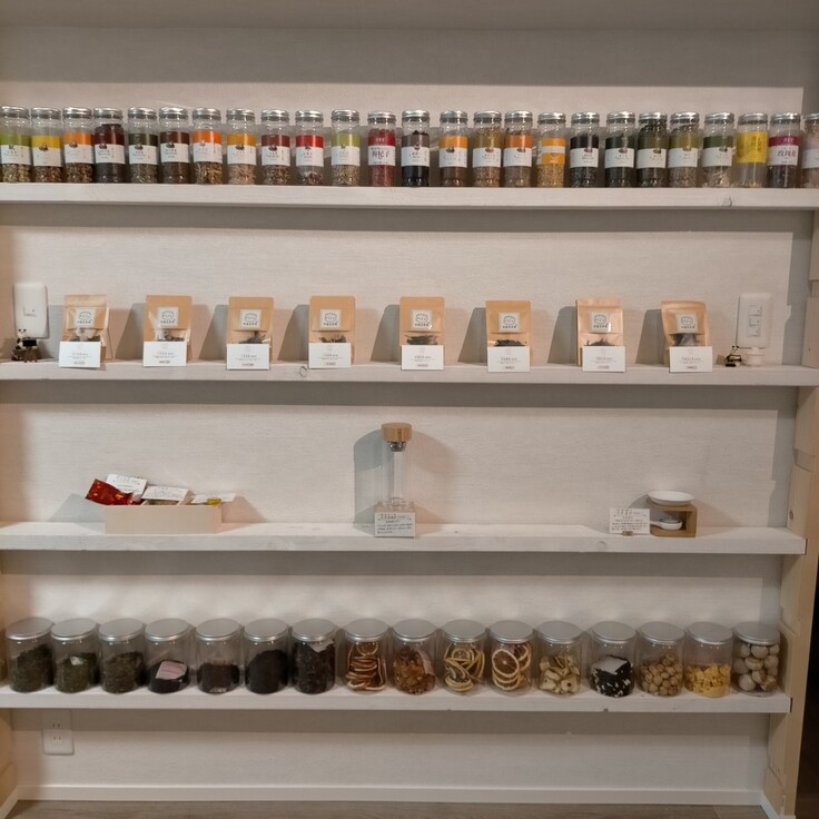 中国花茶館でもいくつかの中国花茶を飲んでいたのでブレンドは簡単なのかなと思っていましたが、こんなにずらりとブレンドの元となるものがありました💦