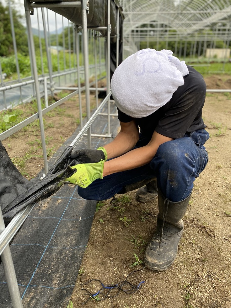先日、地元の中学校である「砂谷中学校」の3年生の皆さんが総合の授業でいちご農園の手伝いに来てくれました。彼らは2年生のころにも手伝いに来てくれていて、2回目となる今回は暑い中みっちり1時間、一面に生えた草を抜いてくれました。