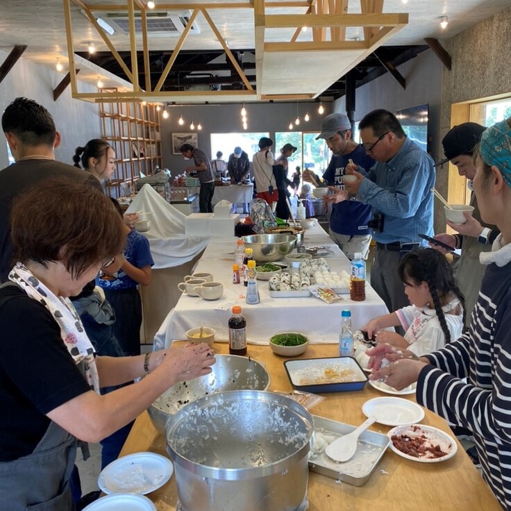 つけ麺を作っている横では、僕の母と妻がおにぎり作り。