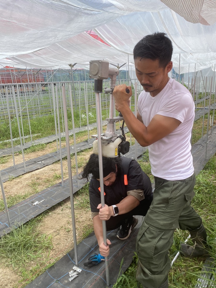 ようやくいちごを植える架台の杭、2000本を打ち終わりました。
