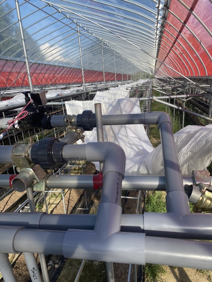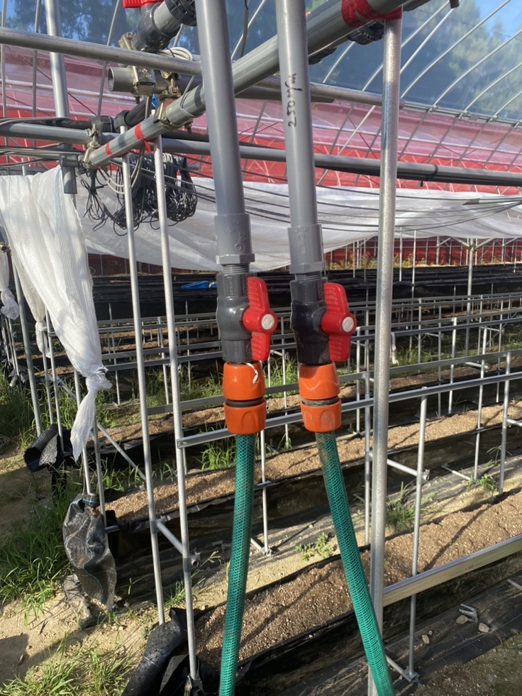 いちごの栽培に欠かせない給水設備。