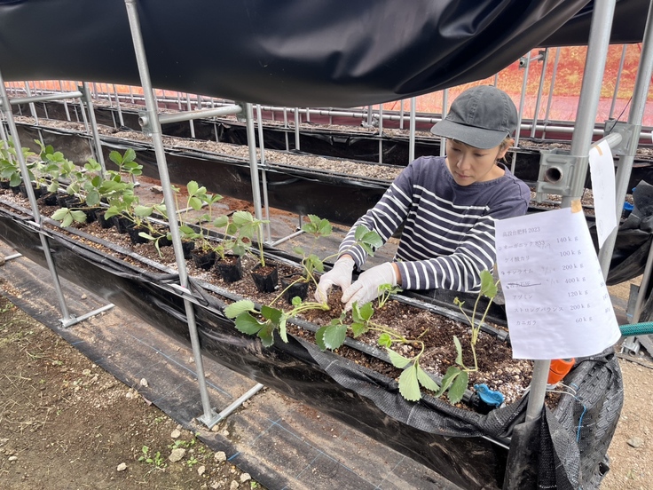 この肥料を入れると抜群に甘いいちごになるそうです。