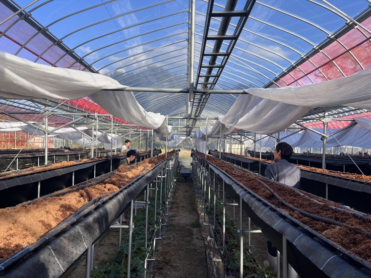 男性陣には架台の上の段に入れたココピートのキューブほぐしをお願いしました。