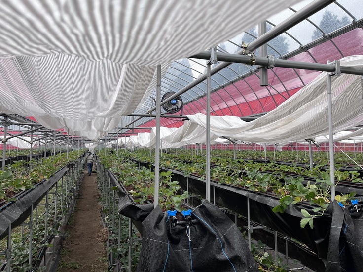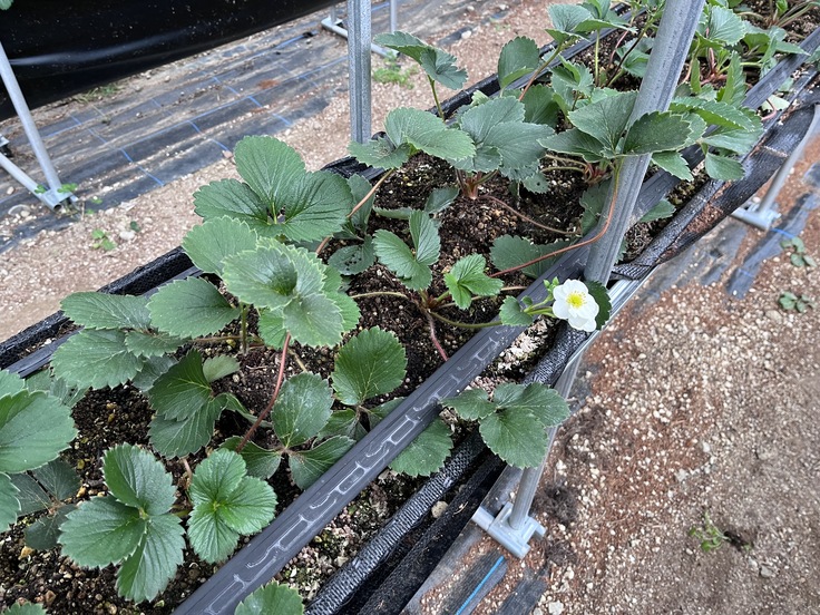 寒さにあたるといちごの苗は休眠に入ってしまうため、いちご狩りシーズンの年明けから(初年度は2月を予定)実をつけさせるためには一定温度を保って暖かい中で生育する必要があります。