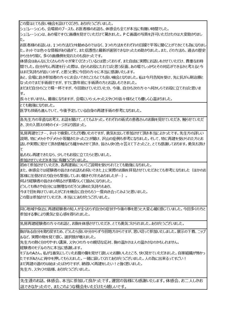 ・スモールミーティングに参加された方からの声(匿名)や開催内容をまとめた報告書を送付させていただきます。