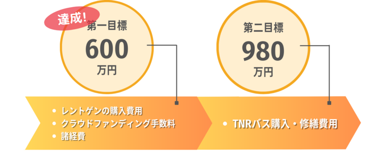 第一目標金額はゴールではなくスタートです。やっと歩き出せる1歩目です。2歩目の第二目標では、TNRバスの購入を目指しています。