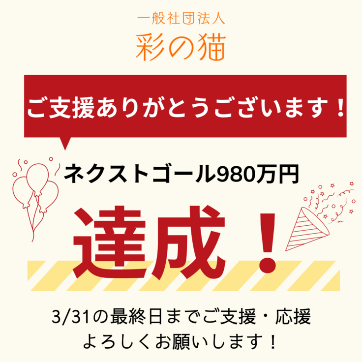980万円を超えたご支援は、TNRバスに乗せる医療機器代に充てていきます。