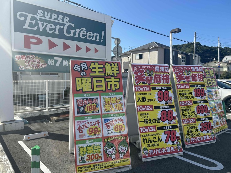 スーパーエバグリーンさんは産地直送の新鮮な生鮮食品や、日用品、医薬品まで取り扱う地域密着型の店舗です。お近くにお越しの際はぜひスーパーエバグリーン湯浅店様でお越しください。