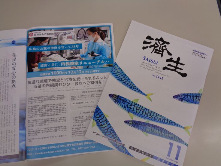 また、「済生会」が発行し、全国の済生会施設や関係者の方に配布する「広報誌 済生」へ当プロジェクトが掲載されました。「広報誌 済生」は、済生会の医療や福祉の取組み、全国の済生会施設から寄せられる記事が掲載され、広く済生会を知って頂けるよう毎月発行される広報紙です。広島県済生会の病院・福祉施設に置いていますので、ぜひ一度ご拝読頂ければと思います。