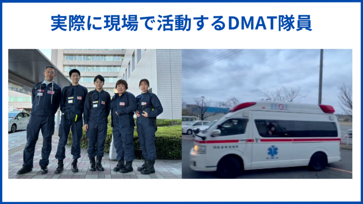 *DMAT(Disaster Medical Assistance Team)とは、災害の急性期(おおむね48時間以内)に活動できる機動性を持った、専門的な研修・訓練を受けた災害派遣医療チームのことです。
