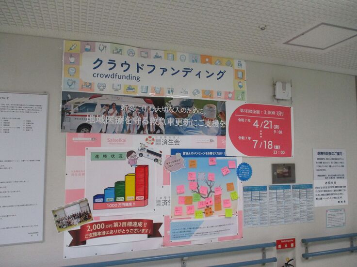 救急車の更新を目的として4月21日から7月18日まで実施してまいりました、済生会新潟病院のクラウドファンディングは、当初の目標を大きく上回る寄付額で、最終日を無事終えることができました。