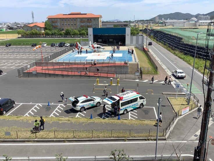 6/15(土)10時から12時で京滋ドクターヘリ見学会が開催され、約150名の参加者に来ていただきました。