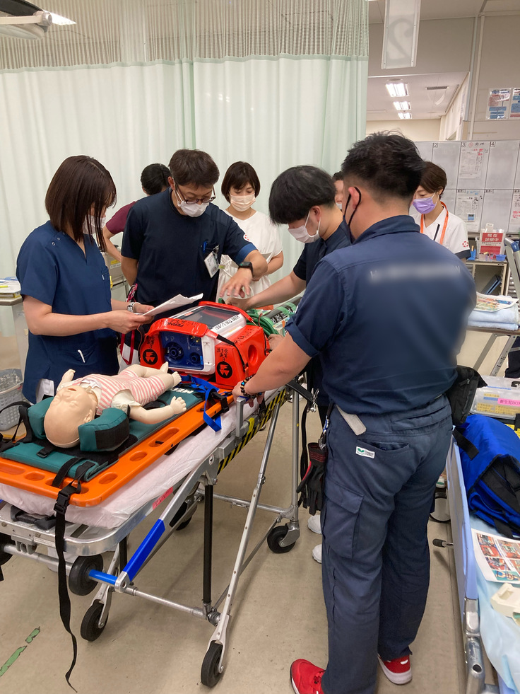 小児は年齢によって、身体の大きさが変わります。その為、安全に搬送するために身体に合わせて医療機器の配置を変更する必要があります。