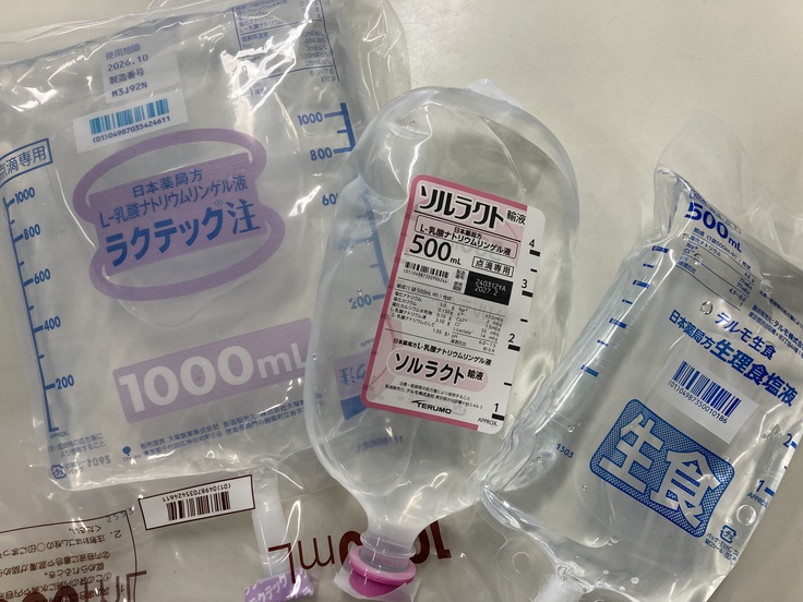 出動に持参する点滴は主に乳酸リンゲル液という輸液製剤を使用します。
