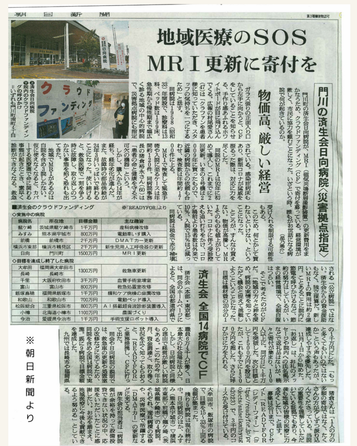 延岡共立病院|「いのち」と「安心」を守る、MRIの更新へご支援を。