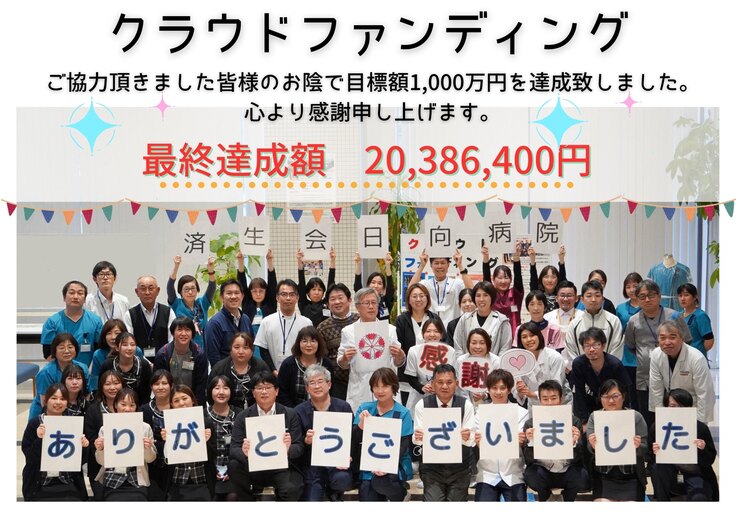 皆さま方の温かいご支援により、目標金額の1,000万円を大きく上回る2,000万円以上の寄付をいただきました。職員一同、心より感謝申し上げます。