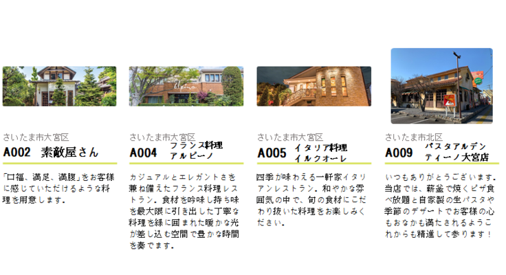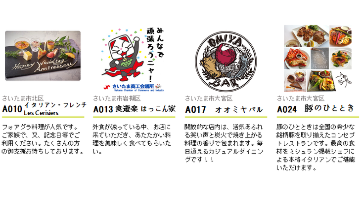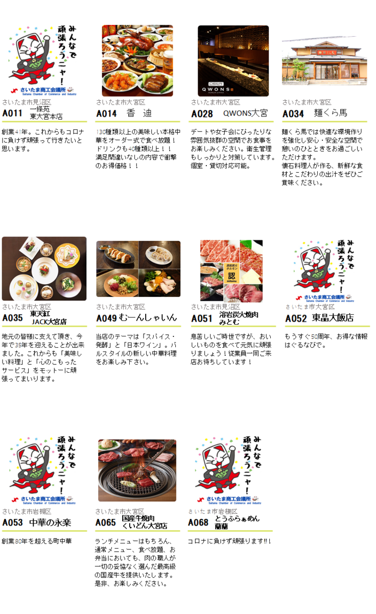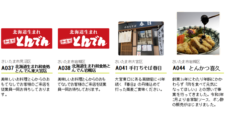 「#みらい飯さいたま×大宮アルディージャ」参加店リスト(五十音順)