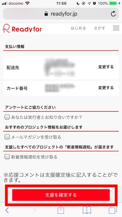 内容を確認し間違いがなければ[支援を確定する]をクリックします