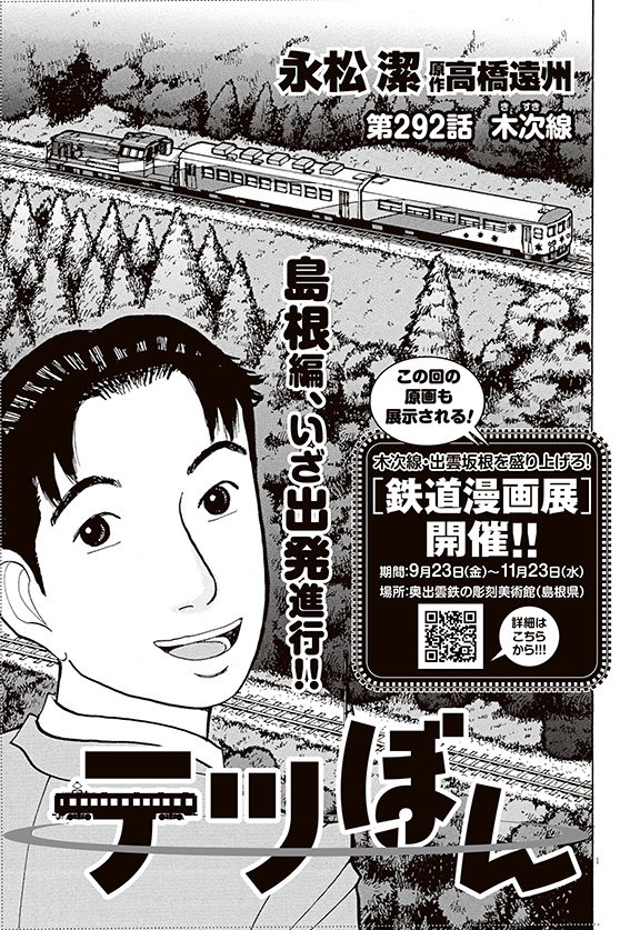 「新着情報」第13回で告知しました通り、本日(6月20日)発売のビッグコミックオリジナル(小学館)掲載『テツぼん』第292話に「木次線」が登場いたします。しかも、嬉しいことに扉ページで、このクラファンの紹介(QRコード付き!)までしていただき、自分の古巣(僕は以前、小学館で編集をしておりました)には頭が上がりません!!ありがとうございました!!