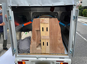 ▼本日の搬出作業の様子(ベースは2つに分解して運びます)