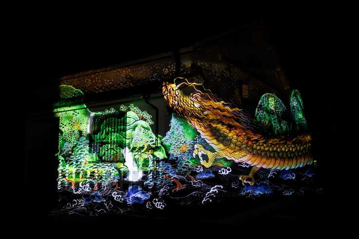 その白壁や古民家、歴史的建造物に絵や動画を投影する、一夜限りの幻想的な光と音のイベントが、