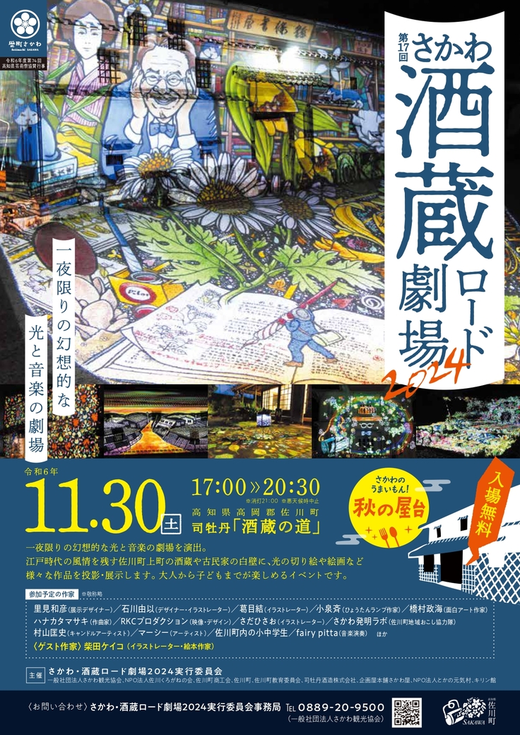 そしてぜひ、美しい佐川の酒蔵の道へ、さかわ酒蔵ロード劇場の幻想的な一夜へ、足をお運びください。