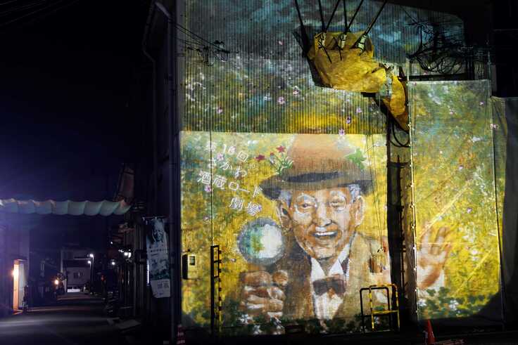 2023年 司牡丹ビン詰め工場に投影(作家:ハナカタマサキ)