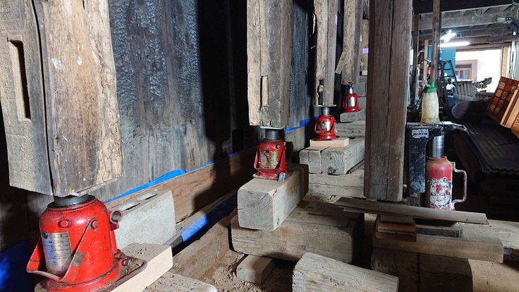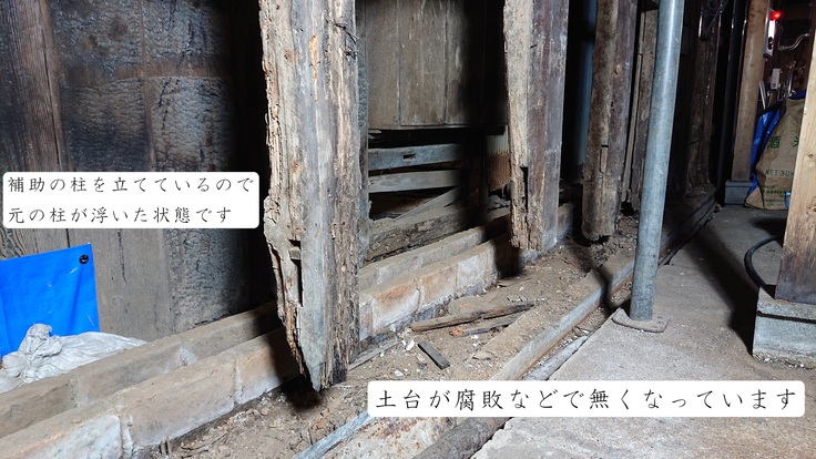 柱の修復が必要な下部分は切り落としてジャッキを設置し、