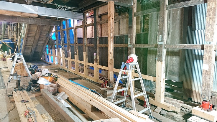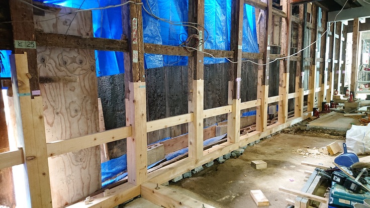 その下へ新しい土台を入れて、柱と繋いでいきます