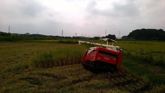 本当は2.5haくらい終了している予定だったのですが、連日の雨のせいで刈り取り作業は上手くいっていません。今日、明日と天気もいいのですが、その前に降った雨が祟りコンバインを入れることが出来なくなっています。