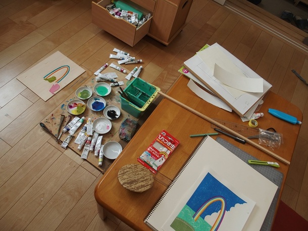 私:えっ、でも輪切りにした木じゃ、色を重ねたりするのはどうやってするんですか。