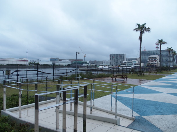 表に出ると、新しくオープンした千葉客船桟橋が見えます。