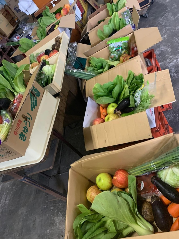 現在は週に一度ほどお野菜や果物をお困りの皆様にお配りしています。