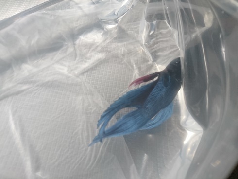 売場でコップサイズの容器の中で動かなくなっているこのお魚を私は連れて帰りました。