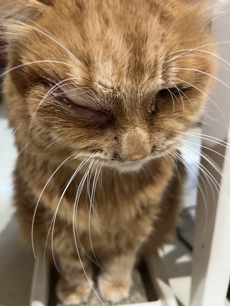 まだ、痛くはないようですが、目ヤニが多く、目の周りが爛れてきました。