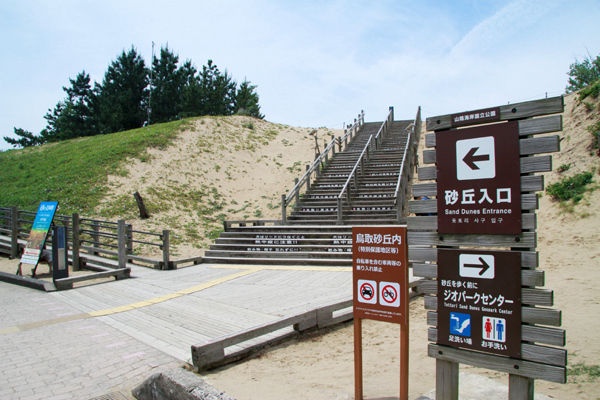 現在の砂丘入り口は急な階段で60m登ります。