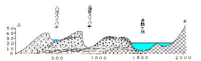 オアシスと多鯰ケ池の間の砂丘断面