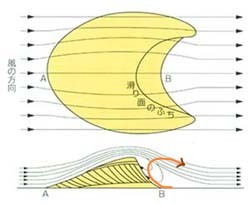 馬の背は典型的なバルハン砂丘(円弧状の砂の稜線をもち均質な砂で構成さ