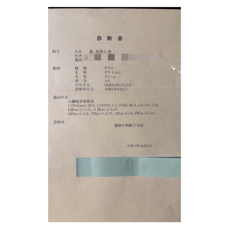 サラに僧帽弁閉鎖不全症と、診断を受けまして只今お薬の内服が始まっています