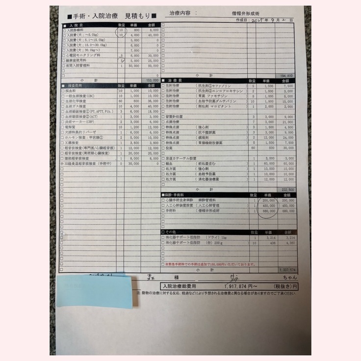 薬の投与はすぐに始めたものの手術は、小さな子にとって、手術の麻酔も心配な上、あまりにも高額な治療費、ペットの保険にも、加入していますがそれだけでは賄いきれなく私の力ではどうしても乗り越えられず、どうして良いものか悩み迷っておりました