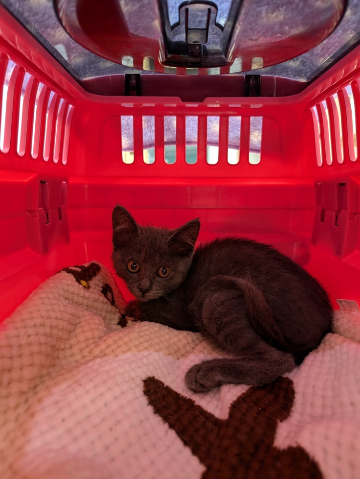正式譲渡に行った時に子猫が居たら〜と言われ、先日ボンネットから出てこないグレーの子を保護したと話してたら今日(24日)に見に来られ、トライアル決定!