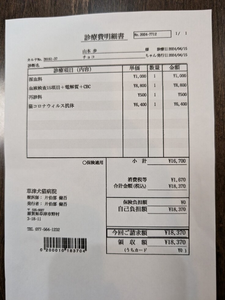 チョコちゃんの医療費 360536円でした