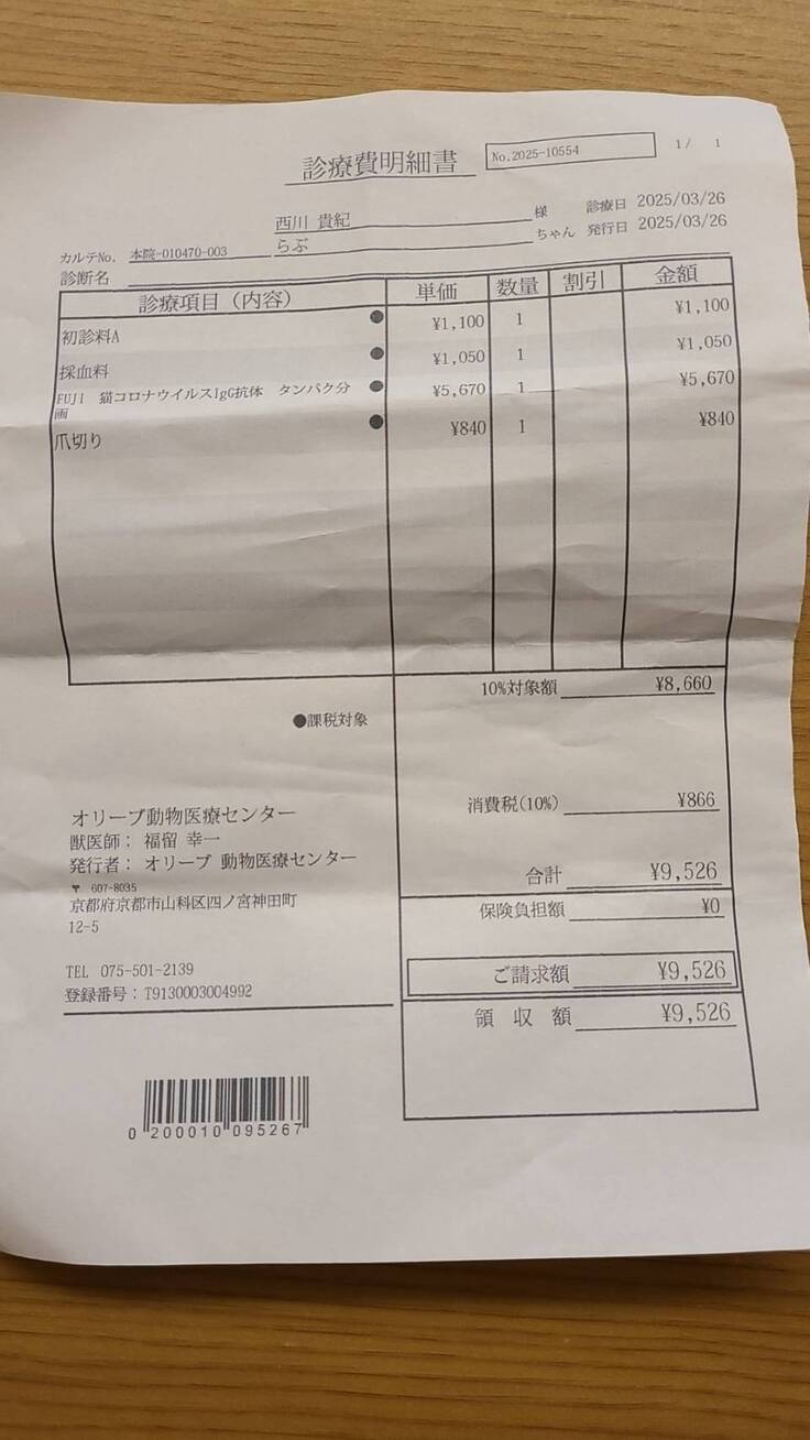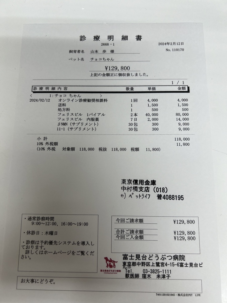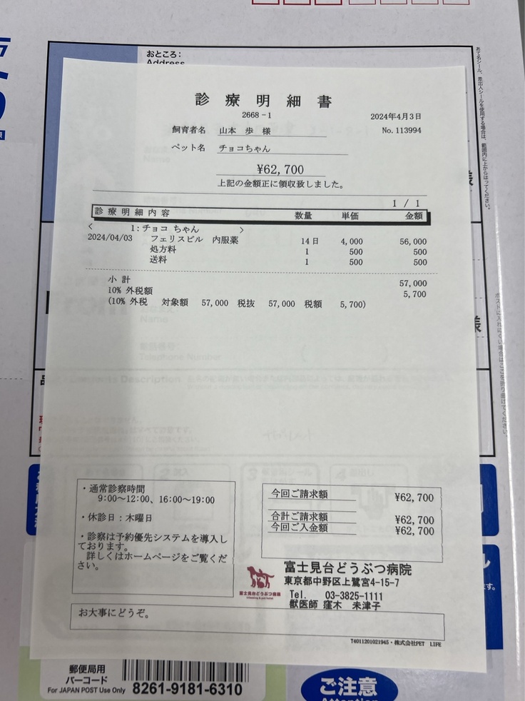 チョコちゃんの医療費報告