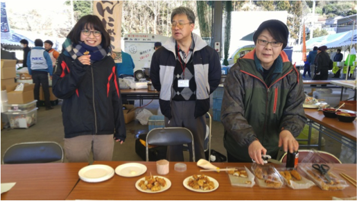 大妻女子大 干川教授と南三陸復興商店街にてサメの試食会