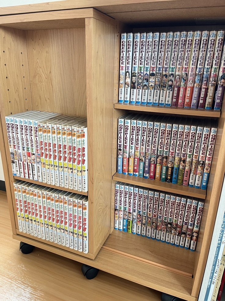 職員の方からのご寄付で本や漫画、玩具などがたくさん集まりました。