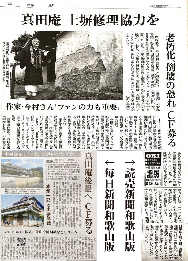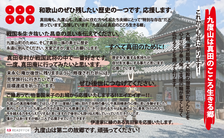 真田庵修繕のクラウドファンディングへのご支援をありがとうございます。